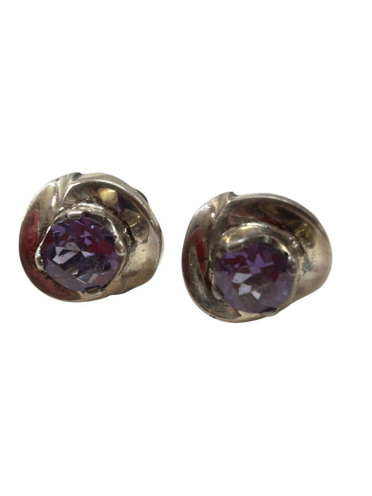 Vintage Silvertone Amethyst Screwback Non-Pierced Earrings .75"