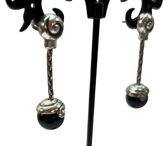 Silvertone Black Post Pierced Earrings 1.25 Inch Drop Dangle