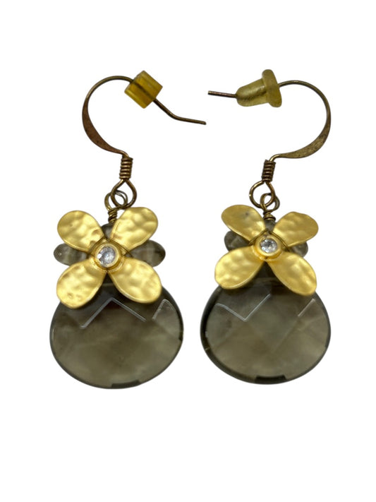Goldtone Fish Hook Earrings Flower Pierced 1.4 Inch Drop Dangle