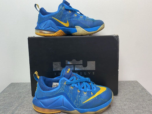 7 Y Nike LeBron 12 XII Low Top 724547-484 Photo Blue/University Gold/Gym Blue