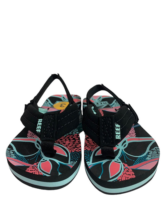 Size 3 (3/4) Kids Reef Little Ahi Sandals Flip Flops Back Strap Black Pink