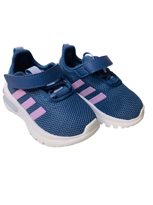 5K Adidas Blue Purple Kids Pull On Sneakers Adjustable Strap Racer TR23