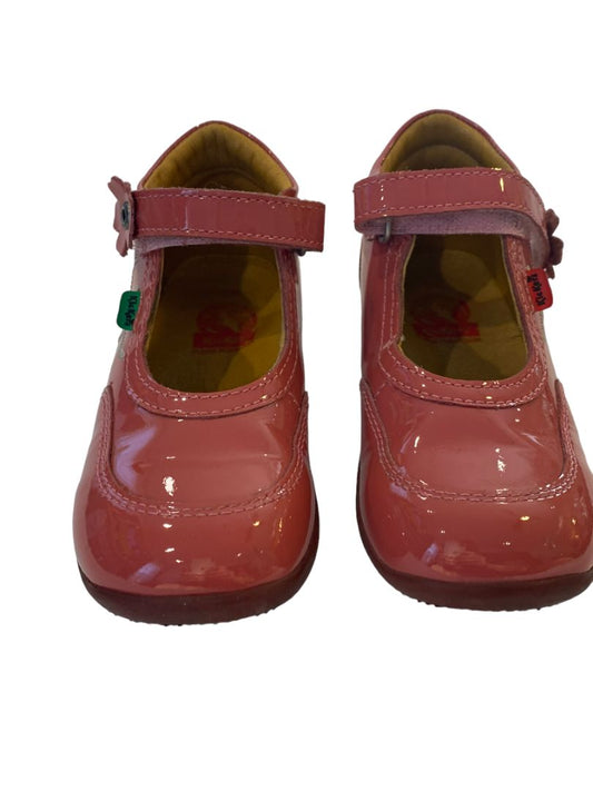 9.5 (26 eu) KicKers Pink Patent Mary Jane Booties Shoes Flower Design Rubber Sole Hook And Loop