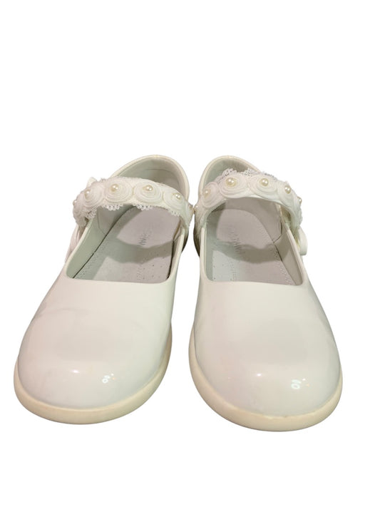 Size 36 Apawwa MC16 Girls White Lacquer Shoes Rosettes Faux Pearls First Communion