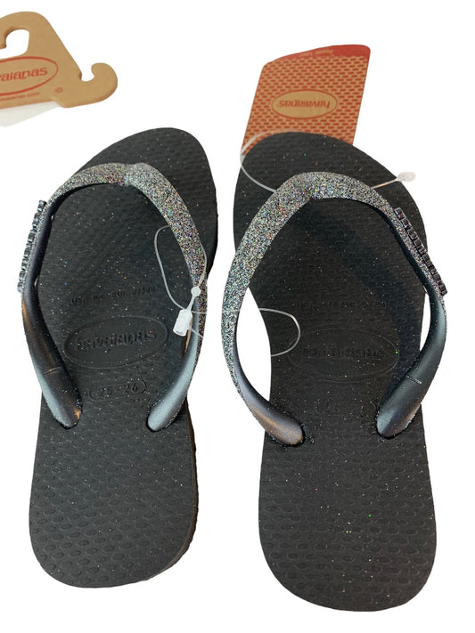 10C Havaianas Girls New Flip Flop Sandals Black Dark Metallic Glitter