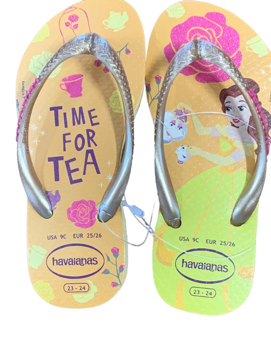 9C Havaianas Girls Disney Princess Belle Flip Flops New "Time for Tea"