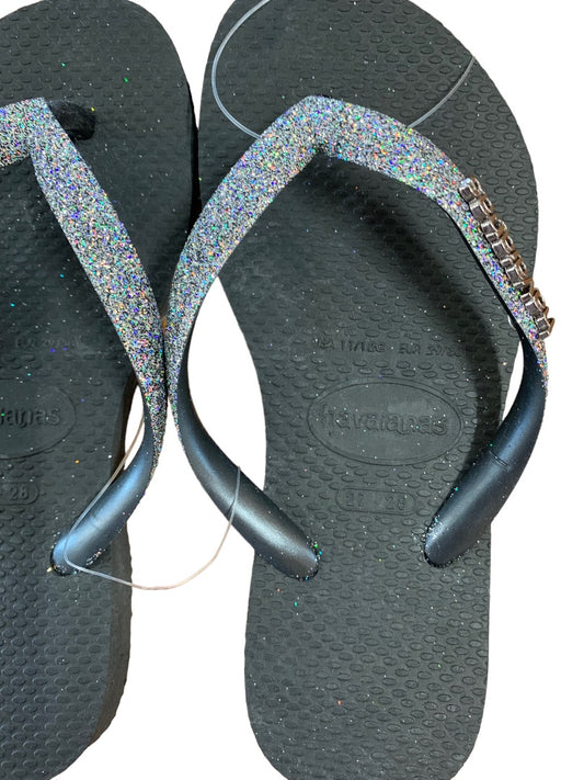 11/12C Havaianas Girls Black Dark Metallic Glitter New Flip Flops Sandals