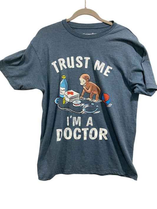 Large Curious George Tshirt Mens Trust Me I'm a Doctor Blue