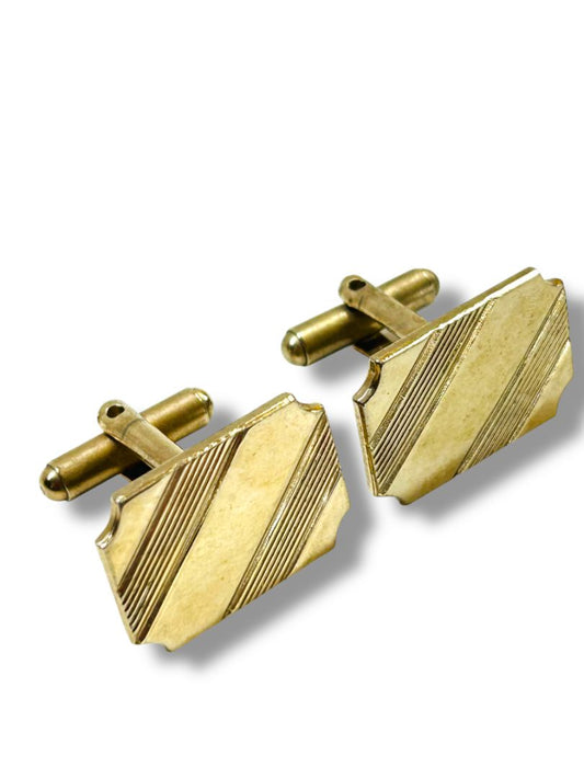 Goldtone Cufflinks Rectangular Diagonal Etched Stripe Pair Cuff Links