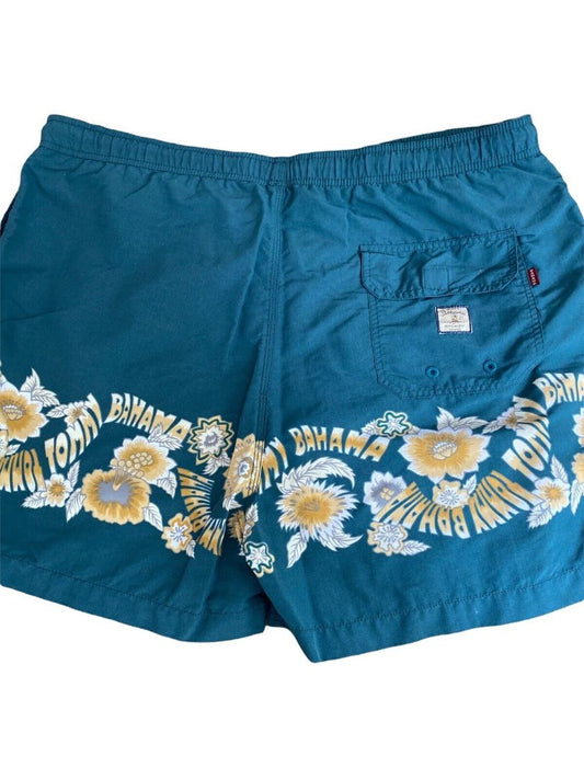 L Tommy Bahama Vintage Men's Swim Trunks Green Hawaiian Print
