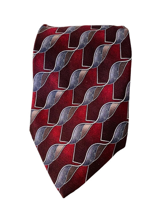 Joseph & Feiss Extra Long Mens 60" Necktie Tie Red Gray 100% Silk