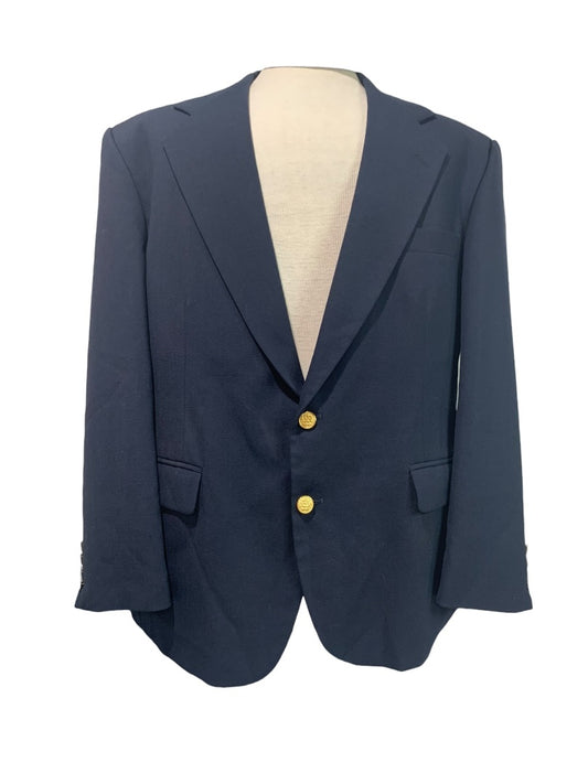 42S Haggar Clothng Co Mens Suit Coat Navy Blue Brass Color 2 Button Sportcoat