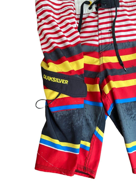 34 Quiksilver Striped Board Shorts Red, Blue, Yellow, Black