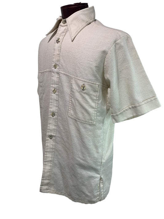 Medium Swingin' Doors Men's Vintage 1970s Off White Short Sleeve Button Up