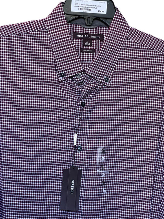 NWT XL Michael Kors Trim Stretch Check Button Down Shirt Fall