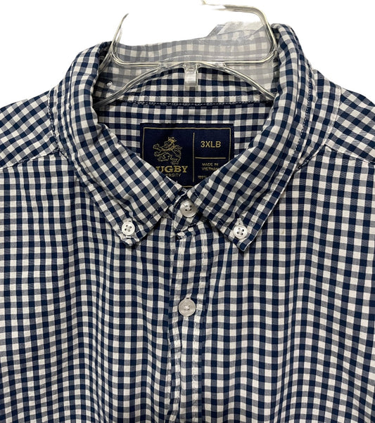 3XLB Rugby University 100% Cotton Plaid Button Down Short Sleeve Big Mens Shirt Pocket