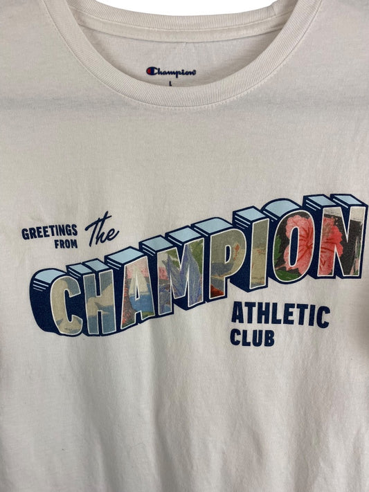 Large Champion Men's White Tshirt Short Sleeve "Greetings from the Champion Athletic Club"