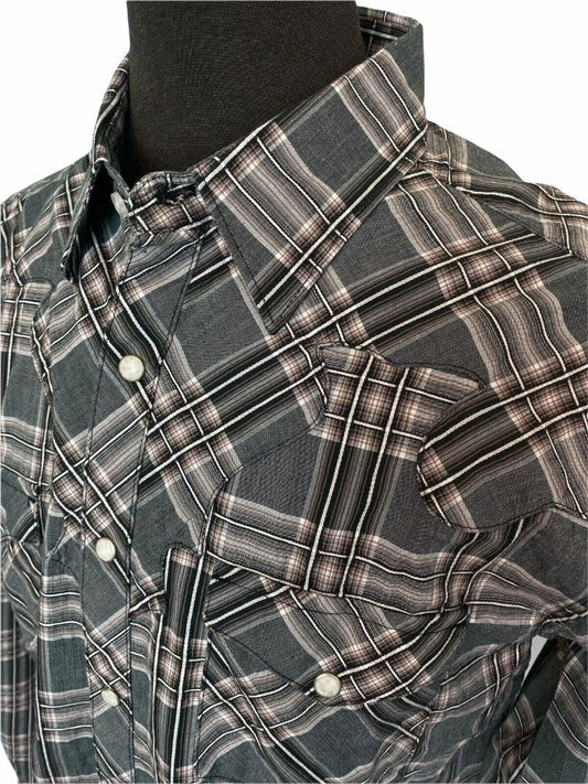 Large Wrangler Retro Men's Pearl Snap Plaid Shirt