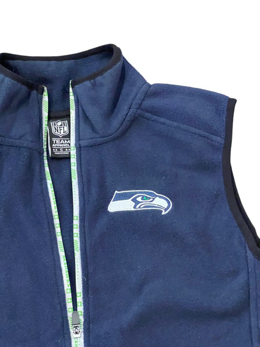 NWT Small Seattle Seahawks NFL Team Apparel Men's Fleece Vest Full Zip Navy Blue MSRP $95