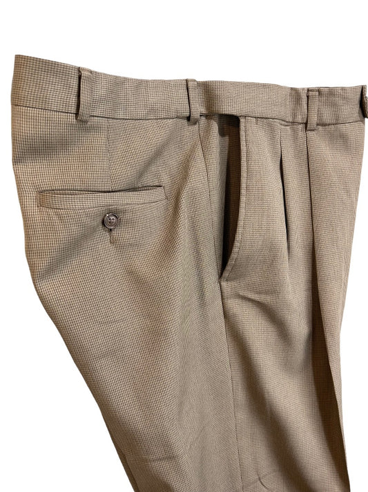 36 x 32 Haggar Men's Brown Micro Houndstooth Cuffed Dress Pants