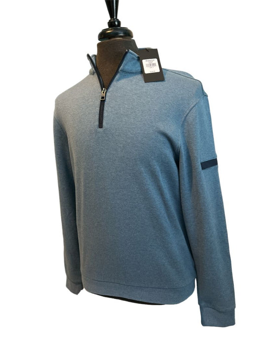NWT Bugatchi Men's Small 1/4 Zip Pullover Slate Blue Mock Neck MSRP $139