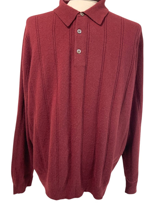 XL Tasso Elba Mens Cashmere Sweater Collared Burgundy