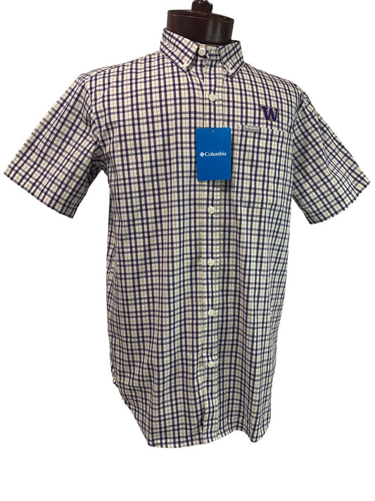 Small Columbia Mens New Washington Huskies Button Down Shirt Short Sleeve