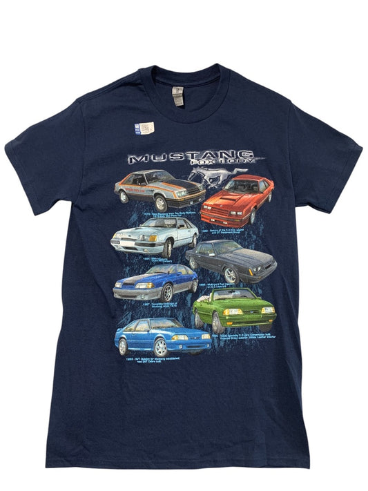 Small Mustang Fox Body Tshirt Ford Official History Blue