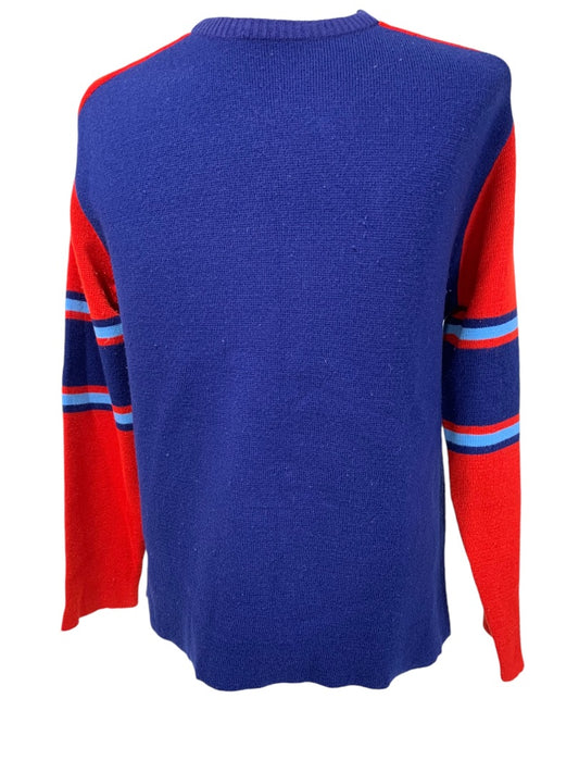 Large KP Sweater Mens Blue Red Vintage 1970s Sweater Pullover Crewneck