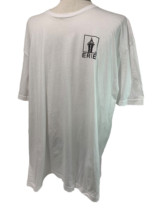 3XL Erie Apparel Mens White Tshirt Souvenir Cityscape Back Front Graphics