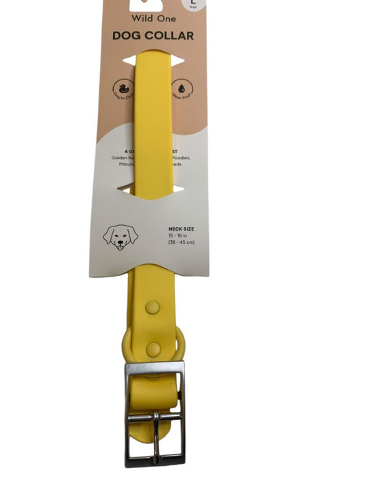 Large Wild One Dog Collar All Weather Durable Flex-Poly Butter Yellow Neck Size 15-18 inches