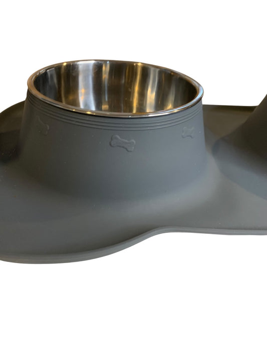 Dog Food Bowls Stainless Steel No Spill Non-Skid Mat Gray