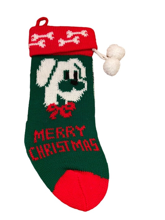 Merry Christmas Red Green White Dog Stocking 11.5" x 4" Holiday Decor