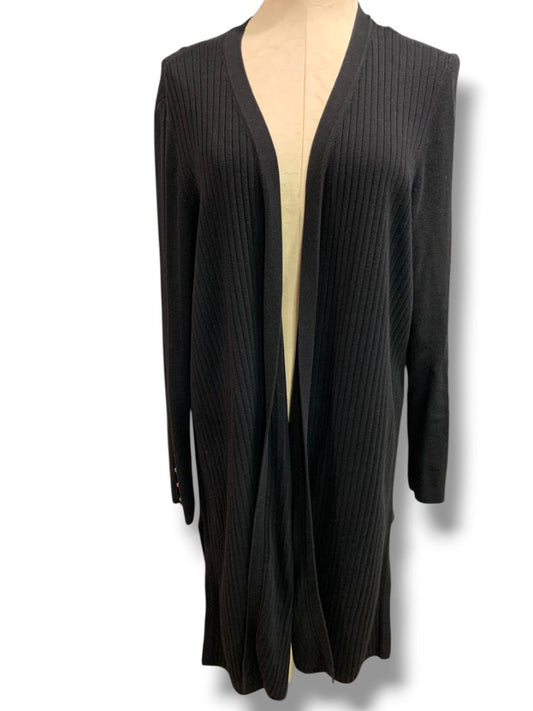 Size 1X Talbots Woman Long Open Black Ribbed Cardigan Sweater