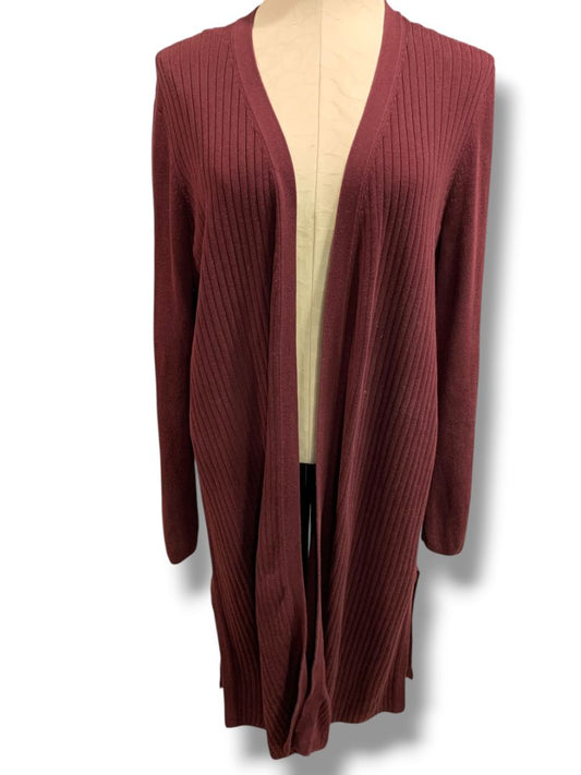 Size 1X Talbots Woman Long Open Merlot Ribbed Cardigan Sweater