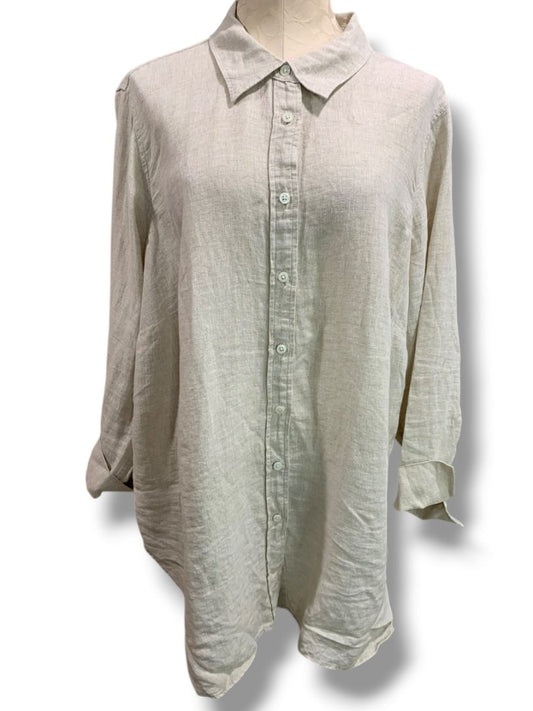 Size 2X Talbots Woman Natural Linen Button Up Shirt Tan
