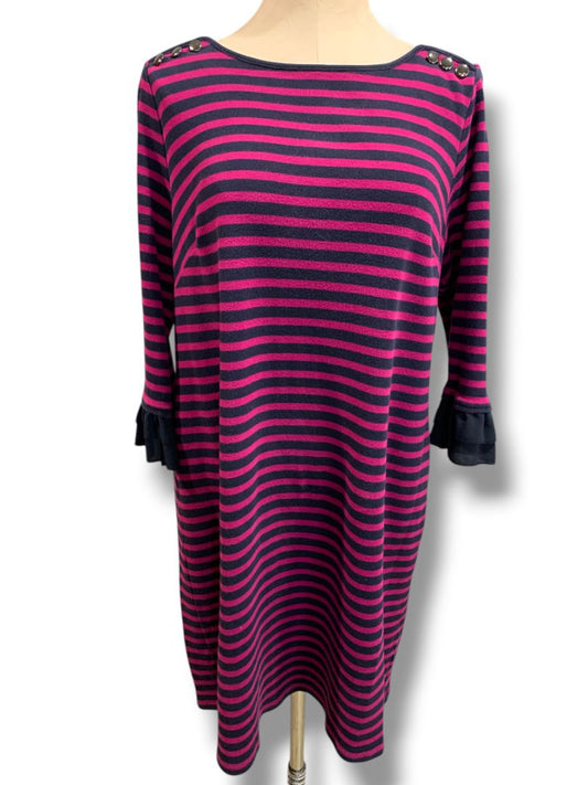 Size 1X Talbots Plus Size Womens Knit Dress Striped Magenta Navy Ruffle Sleeve