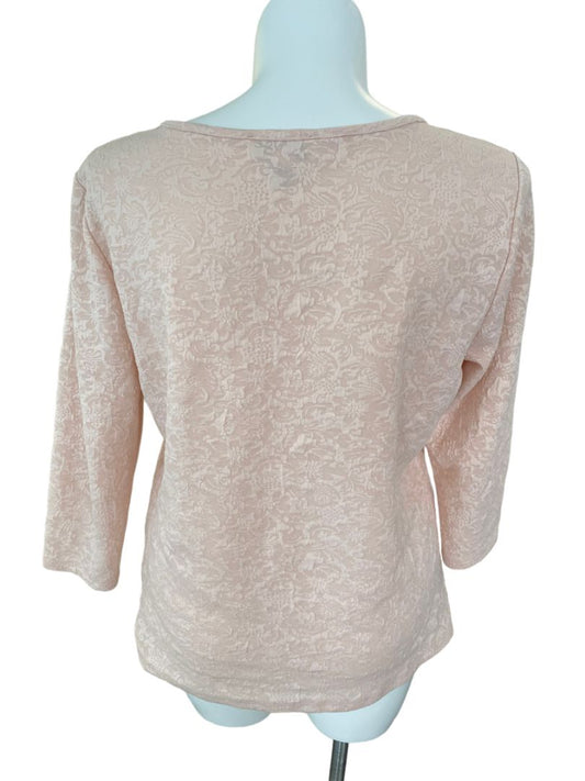 3X Forever 21 Plus Pink 3/4 Sleeve Slim Fit Blouse Floral Textered Shirt