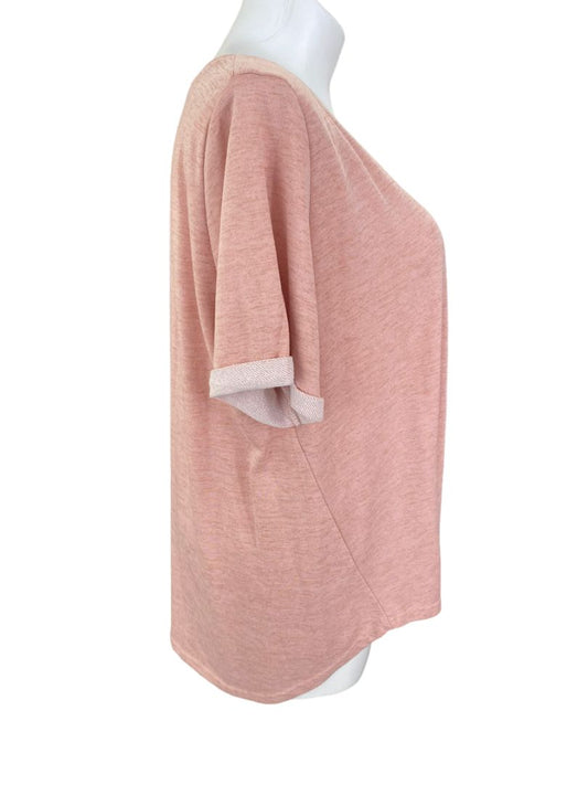 3X Amaryllis Pink Short Sleeve Scoop Neck Shirt Blouse Cuffed Sleeve