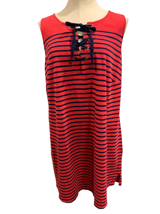 1X Talbots Woman Casual Knit Shift Dress Red Navy Blue Stripe Sleeveless