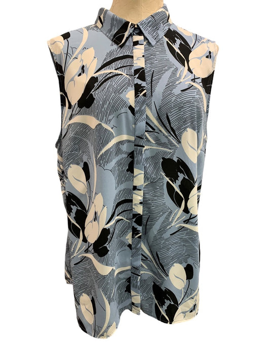 Size 18 Talbots Womens Blue Floral Sleeveless Shirt Button Up Blouse