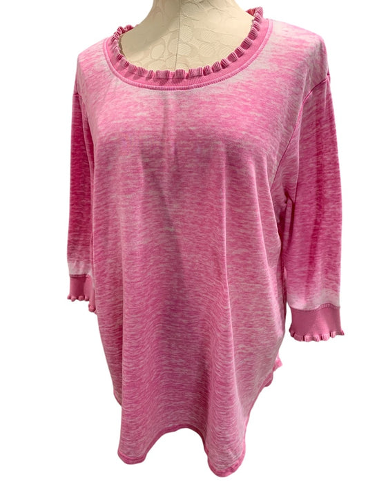1X Jones & Co Jones New York Womens Pink Casual Pink Ruffle Detail Shirt Pullover
