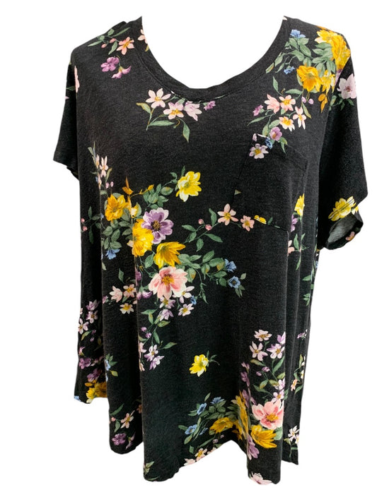 3X Torrid Womens Classic Fit Slub Cotton Tshirt Floral Black Short Sleeve