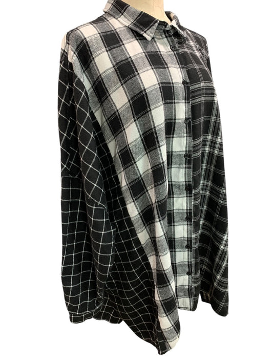 3XL Fashion Nova Womens Mixed Plaid Print Button Up Shirt Oversize