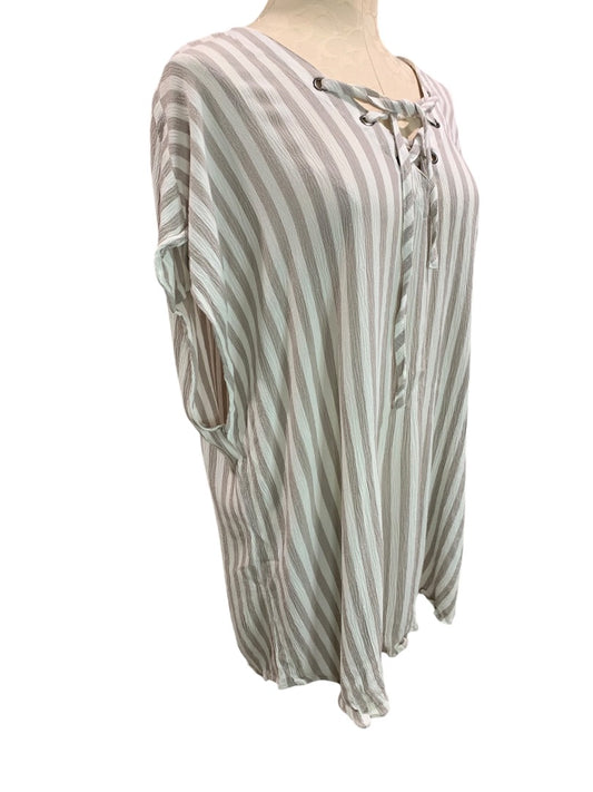 3X Torrid Womens Striped Blouse Sleeveless Stretch Crepe Fabric Lace Up Neckline