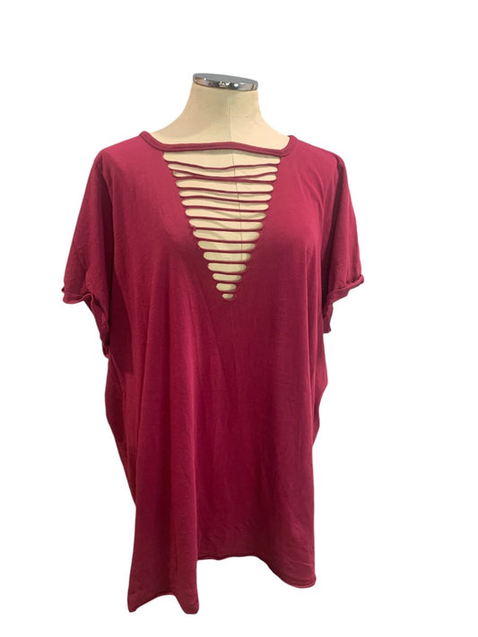 3X Torrid Super Soft Womens Dark Pink Eyelet Sleeve Tshirt Scoop Neck