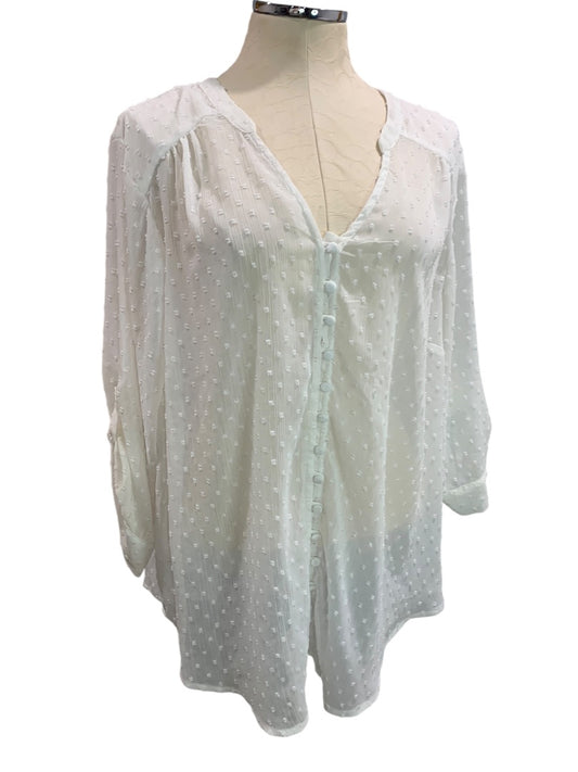 3X Torrid Womens Sheer White Swiss Dot Blouse Button Up Shirt Roll Tab Sleeves