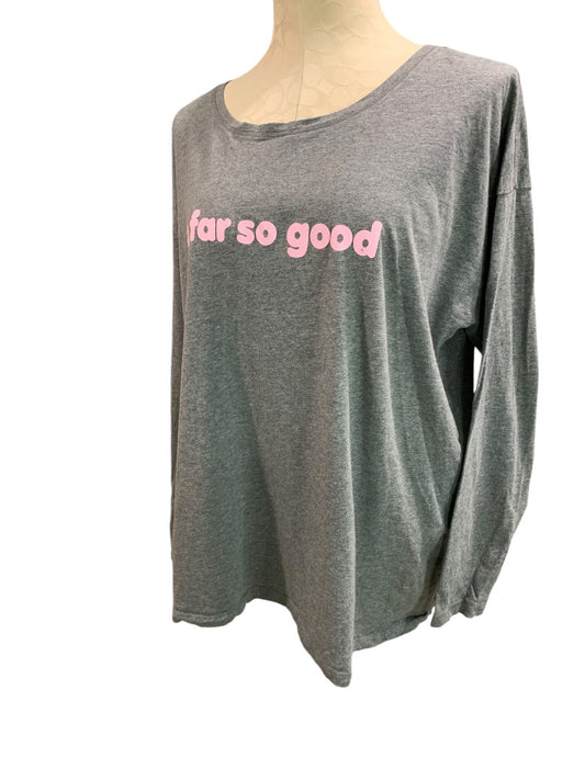 2X Jenni Intimates Womens Gray Jersey Knit 3/4 Sleeve Sleep Shirt "So Far So Good"