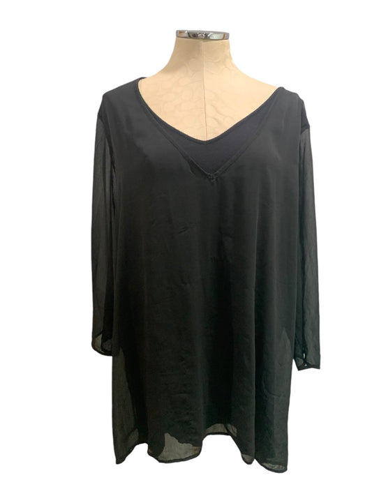 3X New Directions Curvy Soft Black V-Neck Pullover Top Shirt Sheer Sleeve Overlay