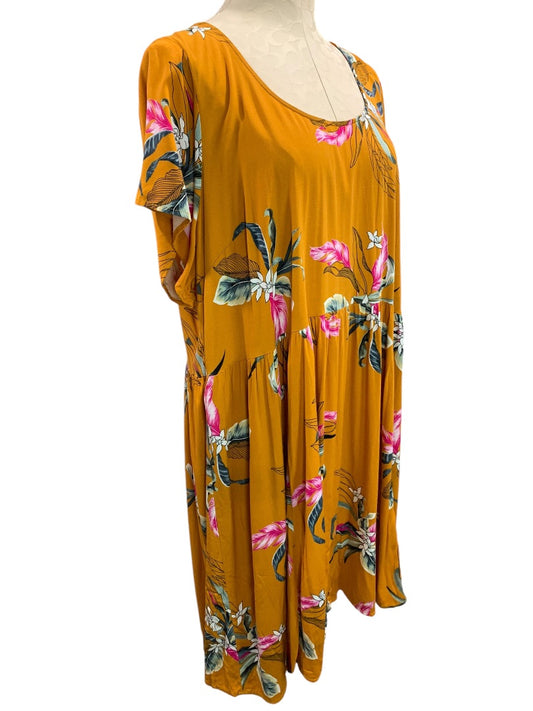 3X Torrid Gold Floral Boho Dress Lightweight Short Sleeve Stretch Rayon